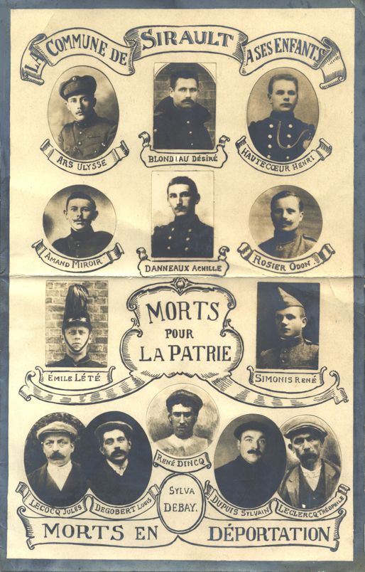 Parmi les déportés siraultois, six n’eurent jamais la chance de revoir leur village natal. Debay Silva, Degobert Louis, Dincq René, Dupuis Sylvain, Leclercq Théophile et Lecocq Jules moururent en captivité, victimes de la cruauté du système qui les avait emprisonnés. Certains succombèrent à l’épuisement ou à la maladie ; d’autres furent probablement les victimes directes de mauvais traitements. Leurs noms, aujourd’hui inscrits sur le monument aux morts, rappellent le prix que Sirault a payé pour son attachement à la liberté et à la dignité humaine.