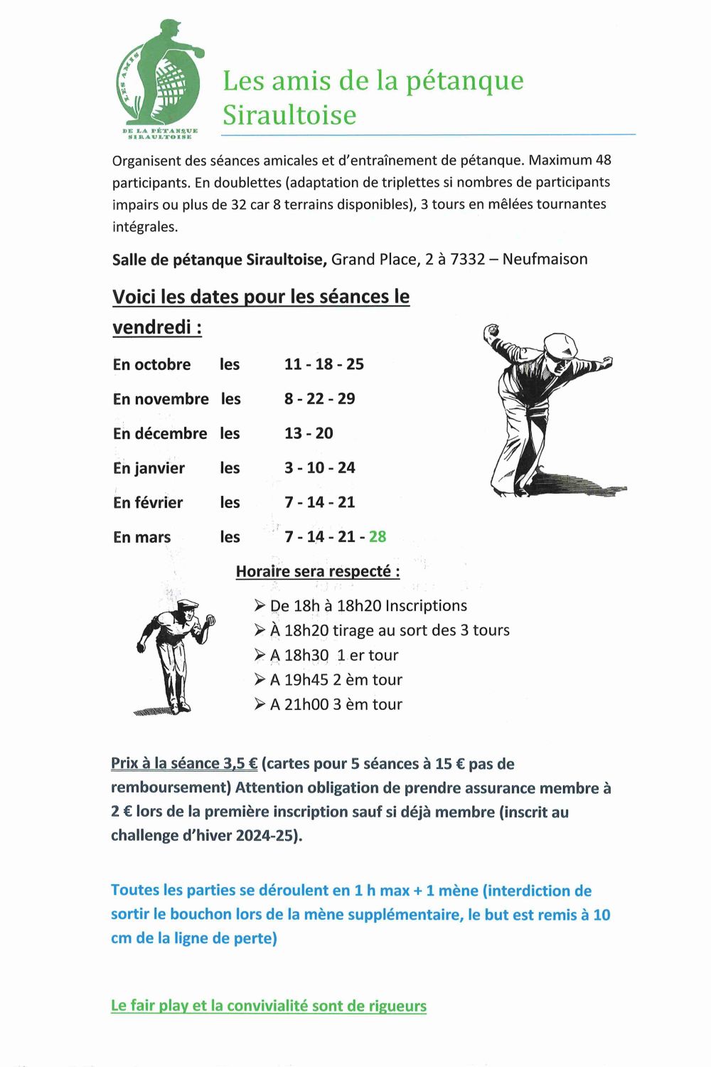 Au-delà du sport, le club est aussi un lieu de lien social, où se tissent des amitiés et où se transmettent les valeurs de respect, de fair-play et de solidarité. Grâce à l’engagement de Monsieur Latouche et de ses successeurs, Les Amis de la Pétanque Siraultoise continuent aujourd’hui à faire vibrer la passion de la pétanque à Neufmaison, en rassemblant toujours plus de membres autour de cette belle tradition.