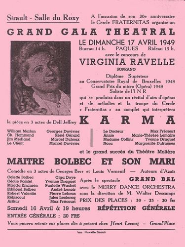 Cette brillante période est suivie d’une phase de transition. Sous l’impulsion de MM. Oscar Martin et Max Frécourt, le président Lebrun présente Liberté Provisoire de Michel Duran, jouée par une toute jeune troupe où figurent notamment Marcel Duvivier, Margueritte Dufrasnes, Yvonne Draguet et Marie-Thérèse Lemaire. La talentueuse Virginia Ravelle, diplômée supérieure du Conservatoire Royal de Bruxelles, prête avec brio sa contribution à cette reprise.