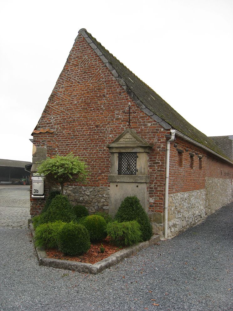 À l’entrée, adossée au pignon de la maison, se dresse la charmante chapelle Saint-Hubert, construite en 1856. Ce petit édifice religieux a su traverser le temps et a bénéficié en 1992 d’une restauration importante, rendue possible grâce à des subsides accordés par la Région wallonne. Chaque année, lors de la procession de la Trinité, la foule s’arrête devant cette chapelle, soulignant son rôle encore vivant dans la tradition locale et le patrimoine spirituel de la communauté.