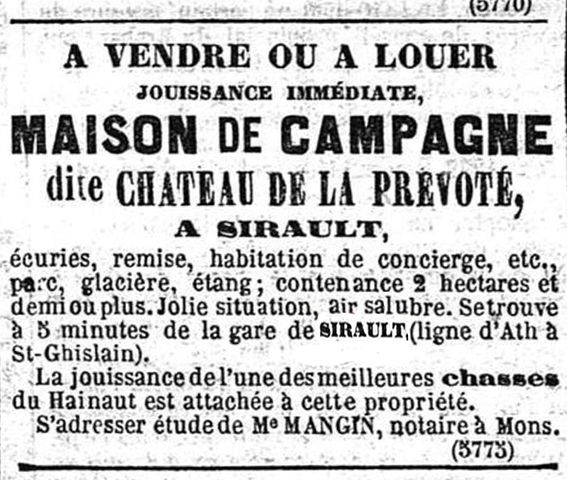 La Révolution française, à la fin du XVIIIe siècle, bouleversa profondément les structures ecclésiastiques. La prévôté de Sirault, comme de nombreux établissements religieux, fut supprimée par les lois révolutionnaires qui visaient à réduire le pouvoir de l’Église et à redistribuer ses biens. En 1796, la prévôté fut vendue comme bien national. M. Demelin Maximilien, notaire à Chièvres, fut le premier acquéreur, devenant officiellement propriétaire en 1805.