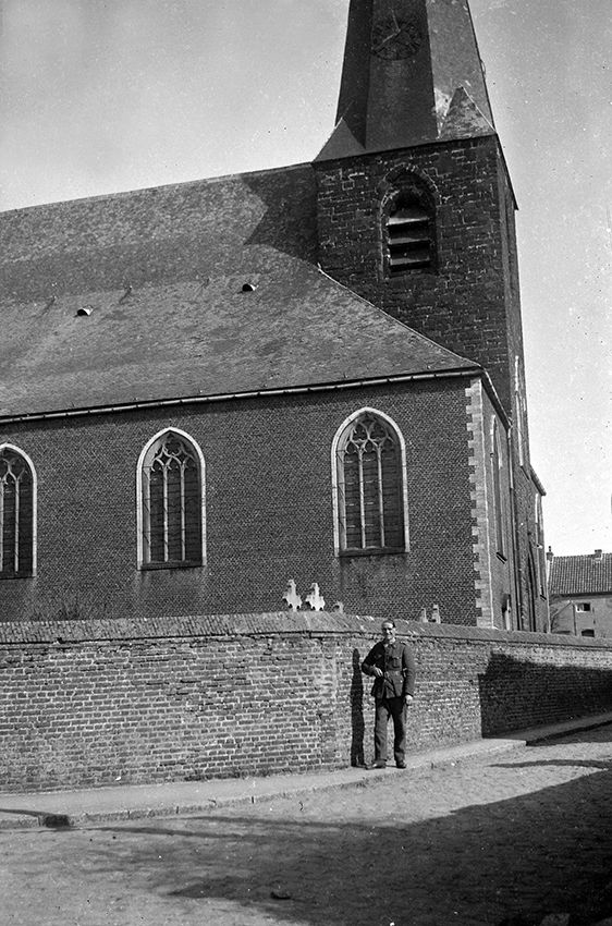 Militaire belge devant l'église de Neufmaison en 1938