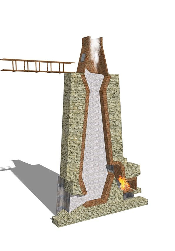 Le four était chauffé à des températures d’environ 900 à 1000 degrés Celsius, grâce à un feu alimenté par du charbon, du bois ou d’autres combustibles. Cette chaleur intense provoquait la décomposition du calcaire en chaux vive (oxyde de calcium) et en dioxyde de carbone, un processus chimique appelé calcination.