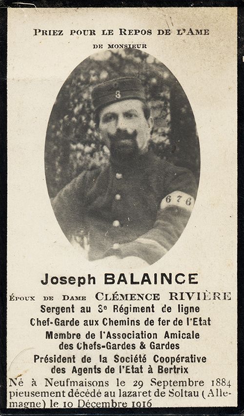 Né à Neufmaison le 29 septembre 1884, Joseph Balaince choisit très tôt la voie de la discipline et de l’engagement en devenant garde-convoi, puis sergent volontaire de carrière dès le 1er janvier 1903. Il fut affecté au 3e Régiment de Ligne, compagnie mitrailleurs, une unité d’infanterie qui devait jouer un rôle crucial dans les premiers combats de 1914.