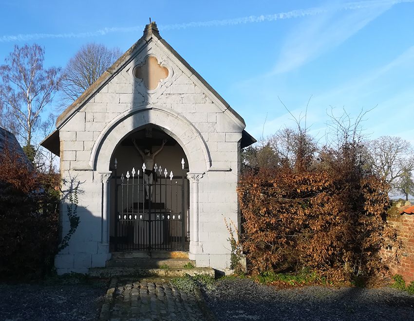 - Chapelle en pierre dédiée à Notre-Dame de Hal. Elle fut érigée en 1809, en souvenir du Bourgmestre Pierre-Joseph Meuret, décédé à cette date.